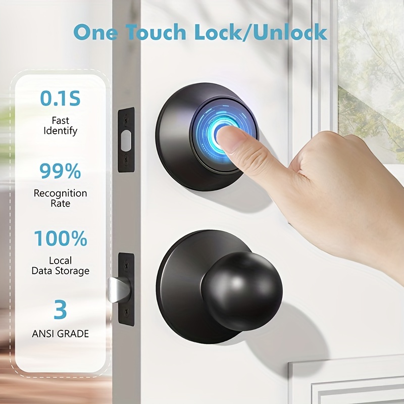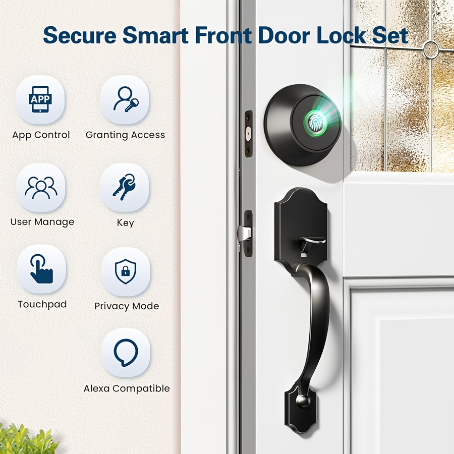 • Electronic Keyless Entry Door Lock For Front Door With App (Safety Management), Smart Lock, Fingerprint Door Lock, Biometric Deadbolt Door Lock With 2 Keys - CDF01T