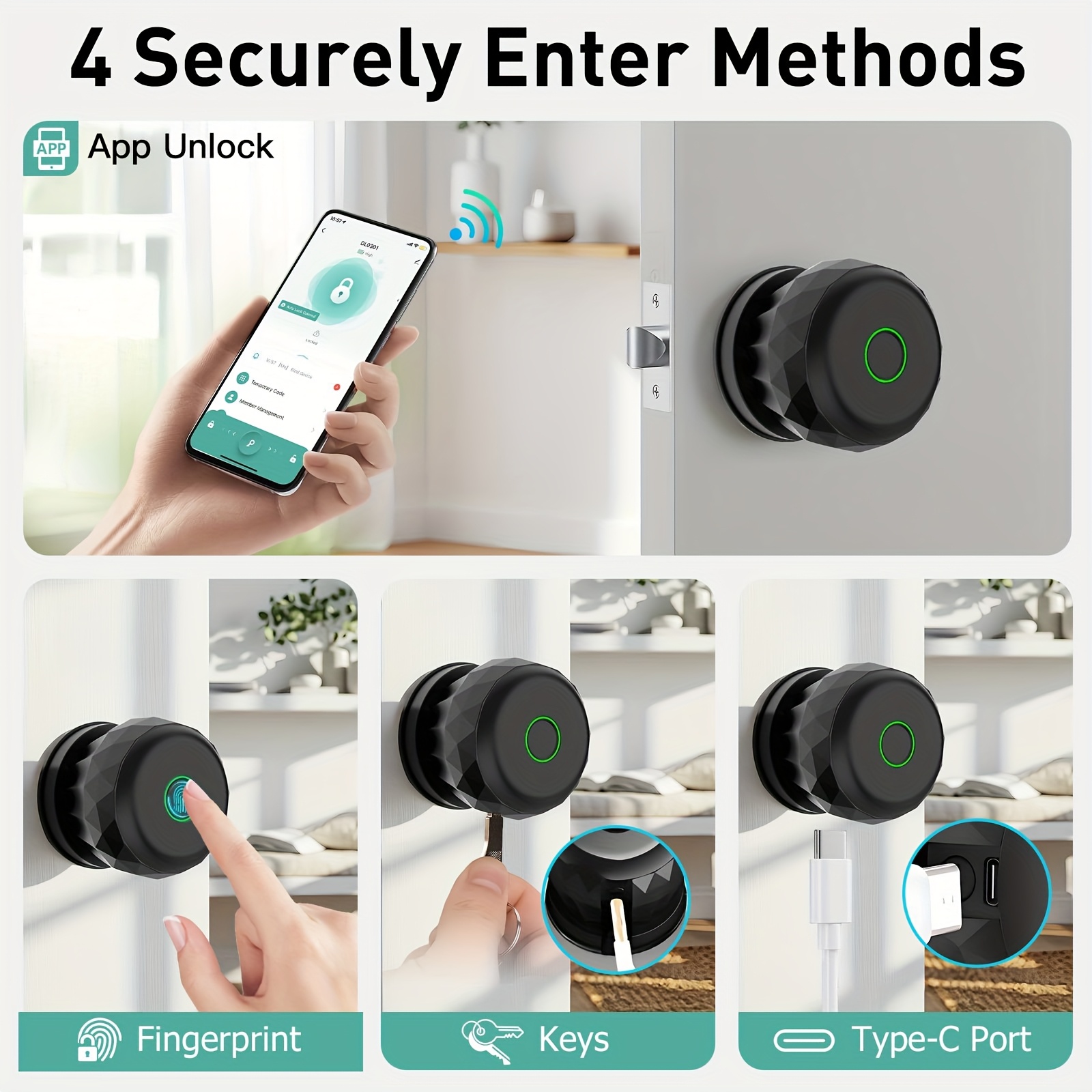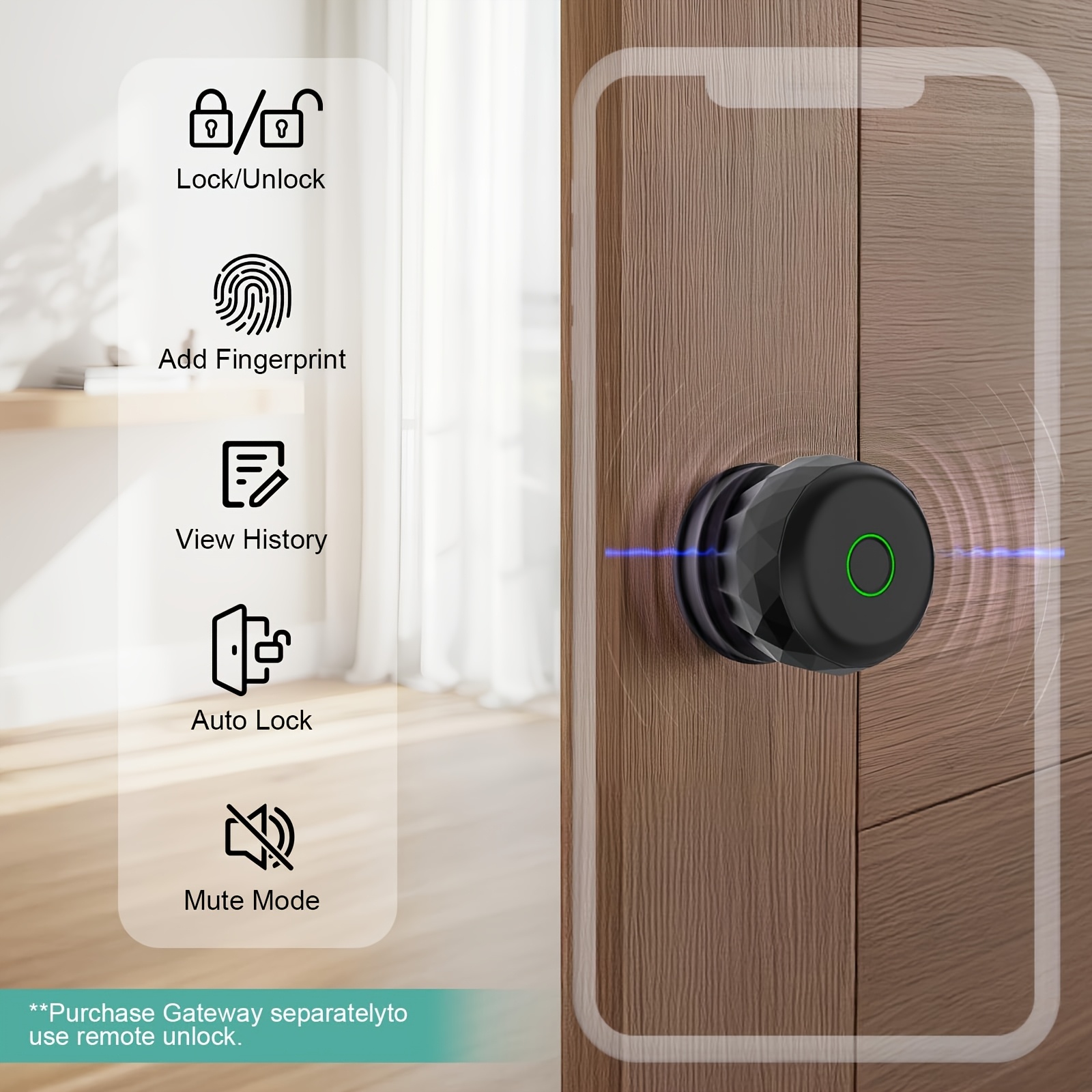 • Fingerprint Door Lock with App Control & Biometric Entry - Keyless Security System Suitable for, Office, Hotel - Fingerprint Scanner Door Handle, Lock, Smartphone Control