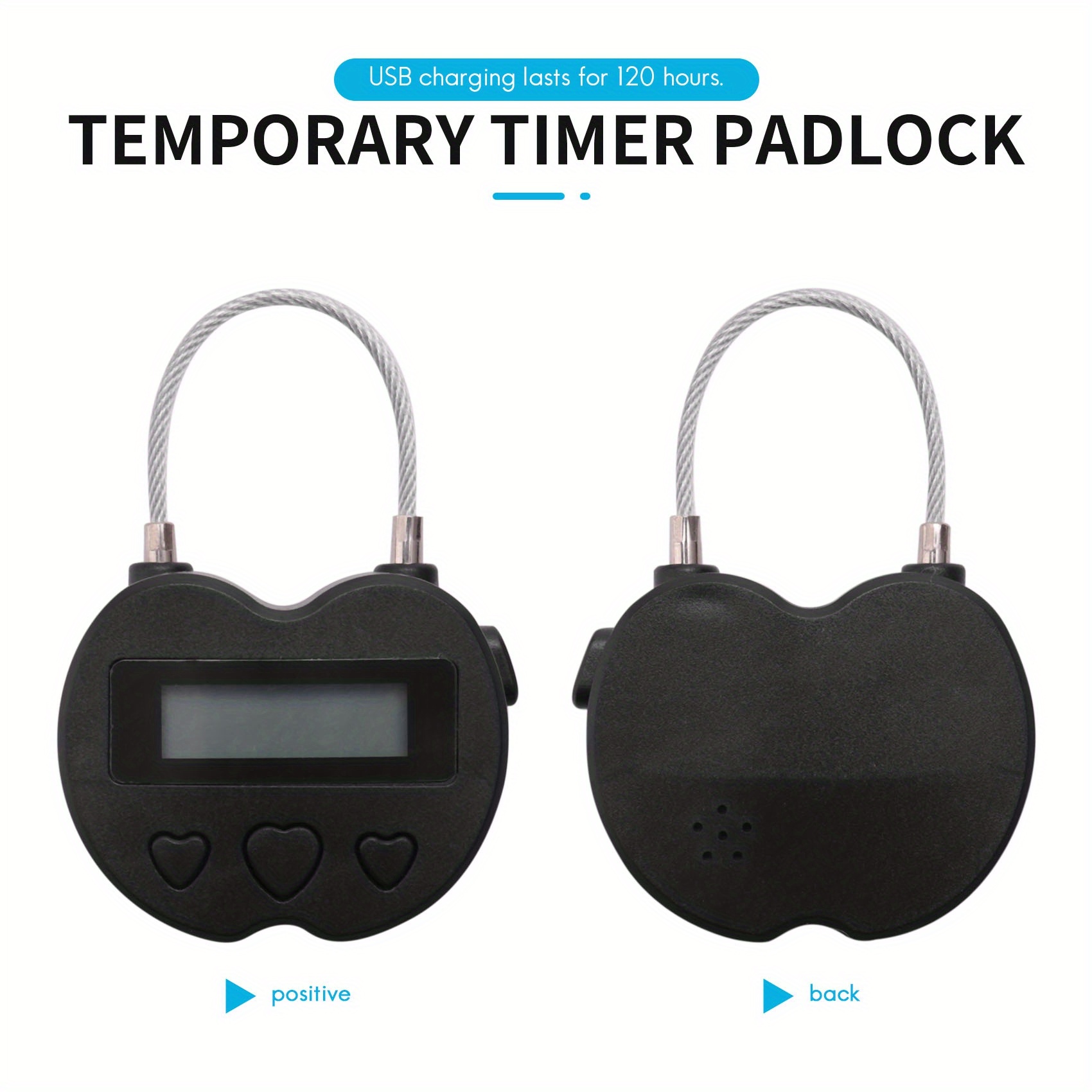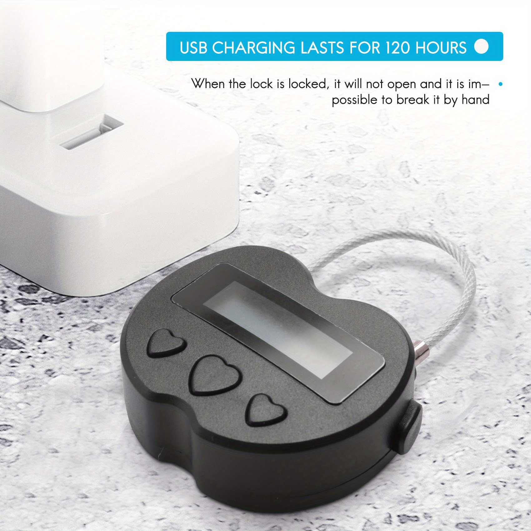 • Tahminah Lock LCD Display Lock USB Rechargeable Temporary Timer Padlock Travel Electronic Timer Black
